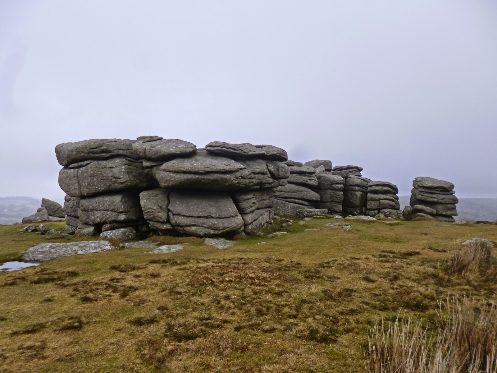 On a grey misty day we headed onto the moor and sat at Combestone Tor for coffee and cake...mist hung in the valley and obscured the tors in swirling veils...